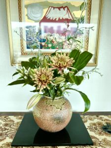 「 池坊 」を囲むように 秋のいけばな達がコラージュされています