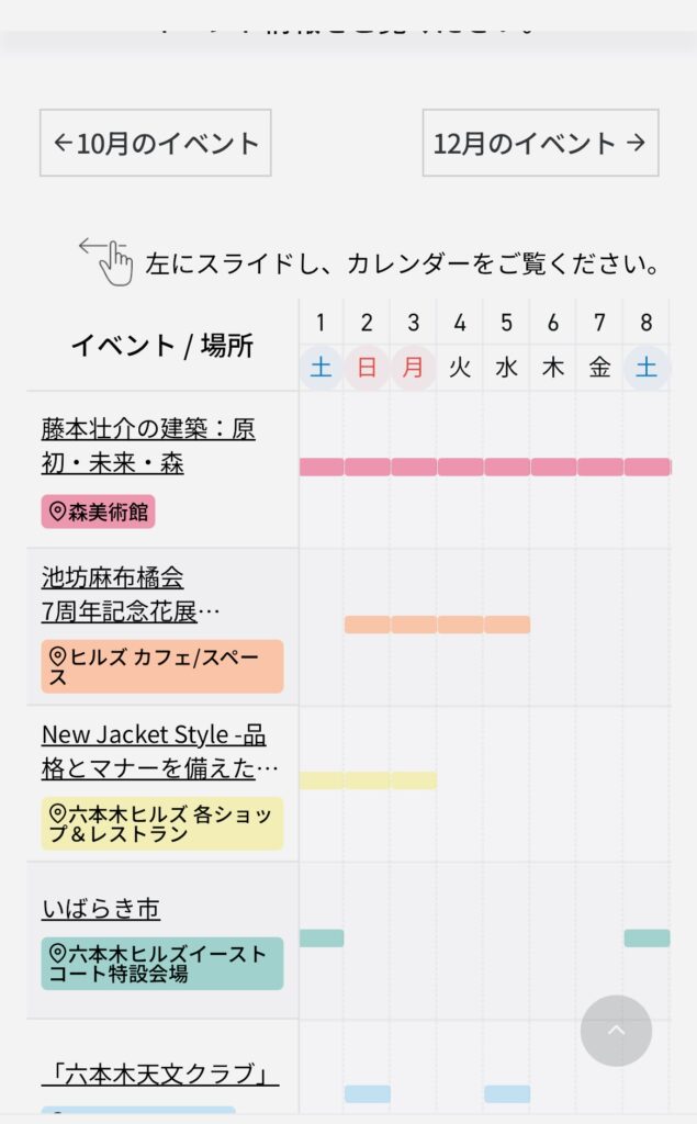 🟪3、六本木ヒルズ公式ウェブサイトURL:http://www.roppongihills.com/events/