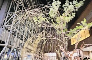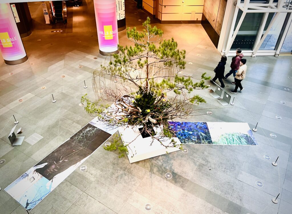 コラボレーション作品は ウェストウォークの2階にあります この写真は 🟥3階デッキより見下ろして撮りました 行き交う人も写っているので 全体の空間の広さがわかります