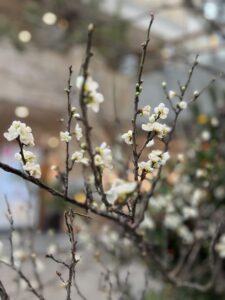 睦月四日 いかがお過ごしでしょうか 朝の手直しは 昨日今日とメンバーがお手伝いに来てくれ 助かりました 特に今日は 新しい梅を追加したので 華やかになりました 太田さん 村山さん 宮地さん ありがとう😊いけ込みをお手伝いしてくれた3人ですから 手直しも安心です