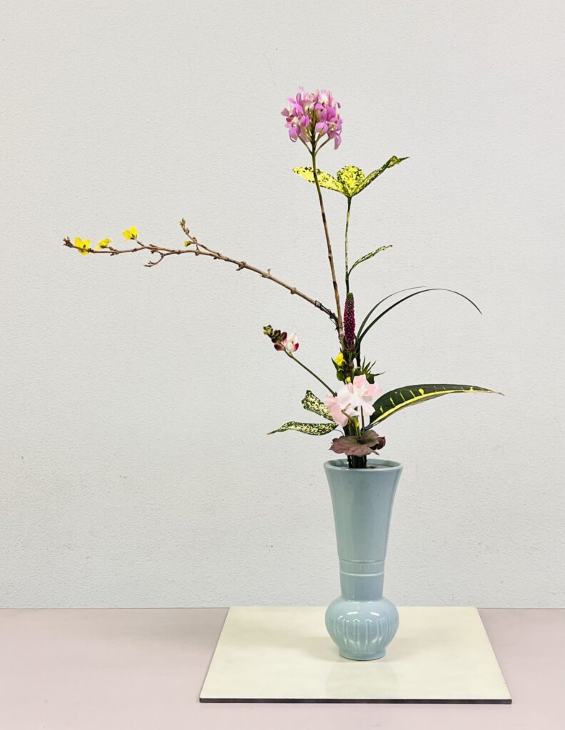 立て花を立てるのは初めてで、分からないことばかりでしたが、先生のご指導で春らしい素敵な作品になりました。
