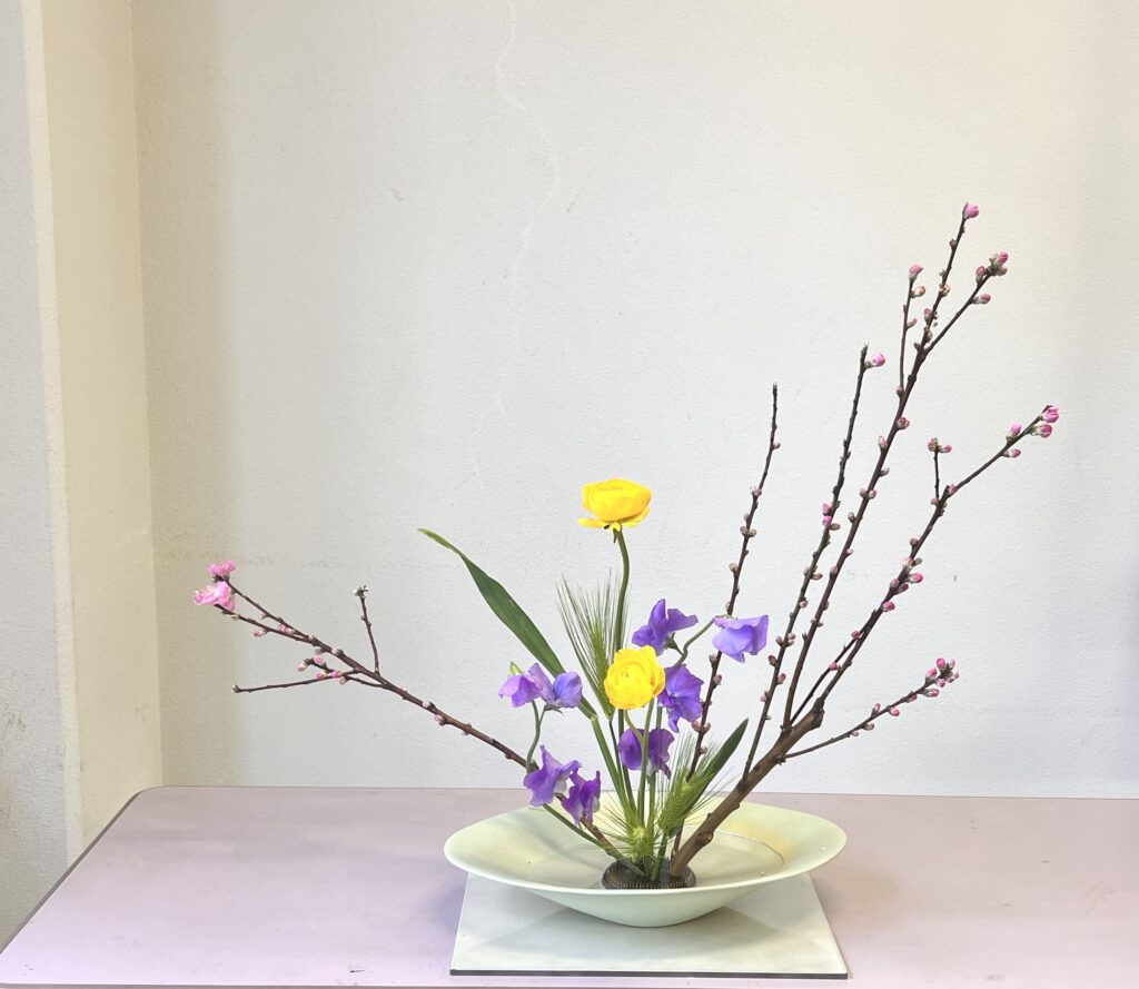 春の訪れを感じる自由花を生けました。桃源郷の再現です!