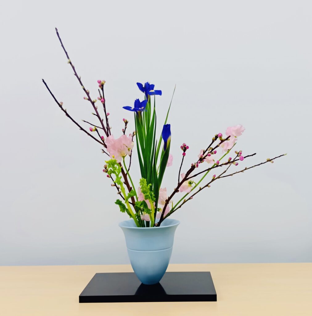 皆さま、こんにちは。由井恭子です。先日、桃の節句にちなんだ、いけばなワークショップ(初心者向け)を開催しました。ワークショップを開催するにあたり、「どのようなテーマ、花材にすれば初心者の方に楽しんでもらえるかな」と考えるのも楽しい時間でした。自分がこれまで参加してきたレッスンの写真や、(今、皆様が御覧になっている)森先生のブログのバックナンバーを参考にして、花材の取り合わせなどを検討しました。花材の取り合わせは何パターンか自分で考え、森先生にアドバイスをいただき、「桃、菜の花、アイリス、スイートピー」にすることにしました。